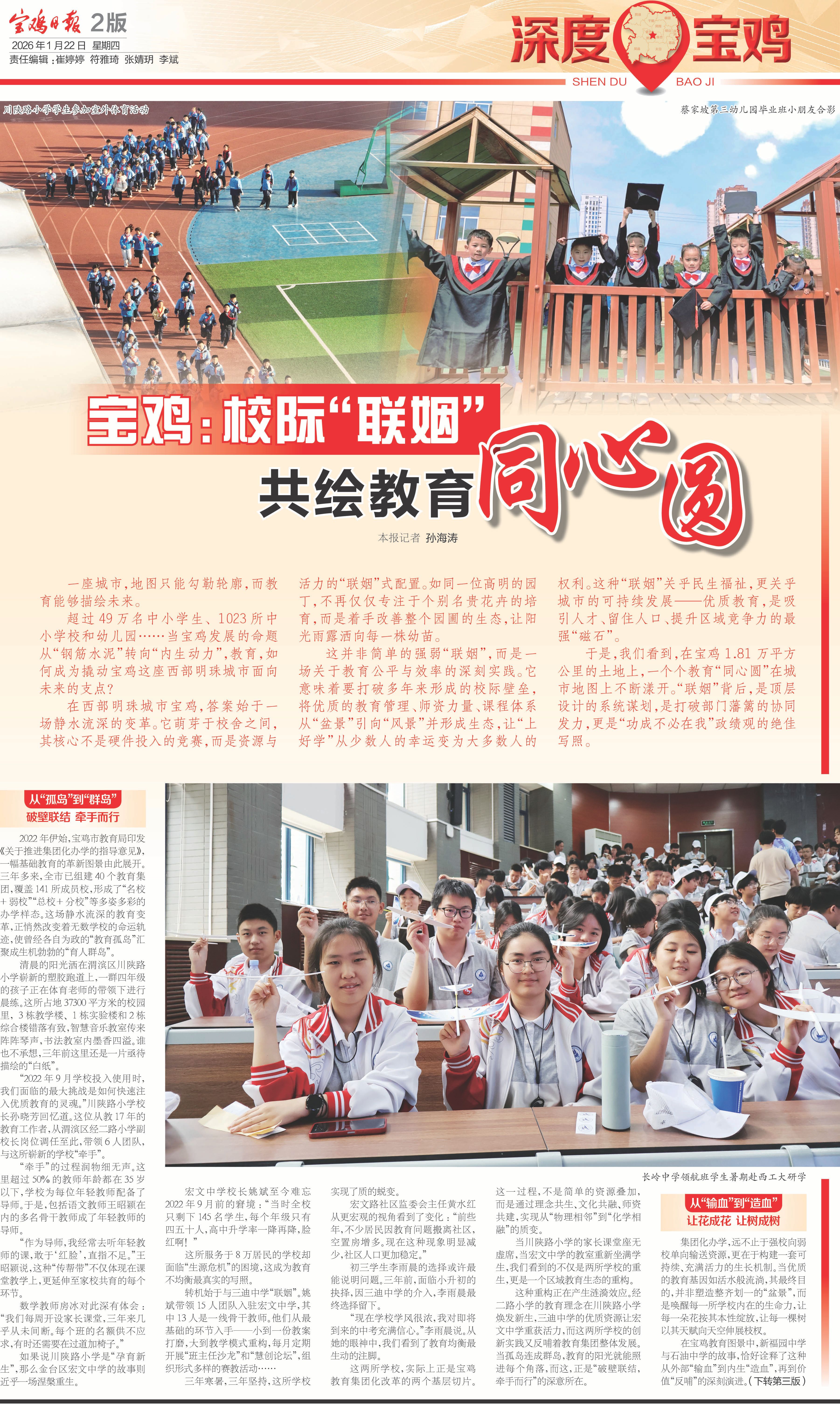 于是,我们看到,在宝鸡1.81万平方公里的土地上,一个个教育“同心圆”在城市地图上不断漾开。“联姻”背后,是顶层设计的系统谋划,是打破部门藩篱的协同发力,更是“功成不必在我”政绩观的绝佳写照。