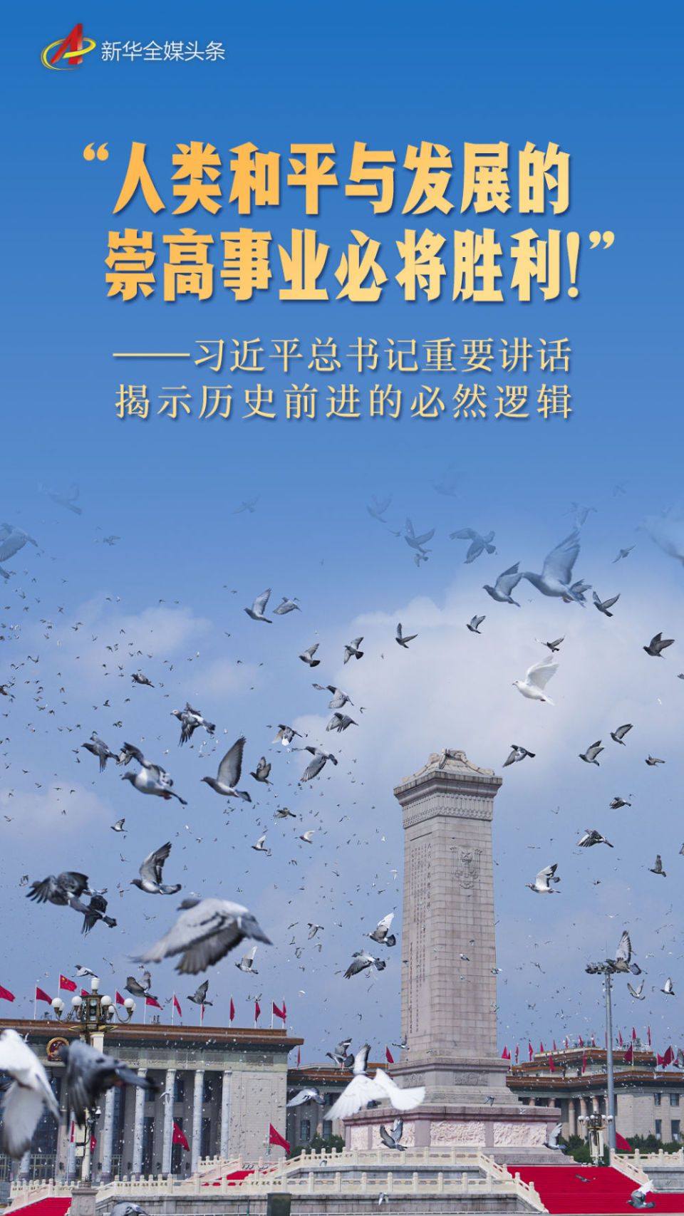 天安门城楼上,习近平总书记的重要讲话声震长空:“中华民族伟大复兴势不可挡!人类和平与发展的崇高事业必将胜利!”