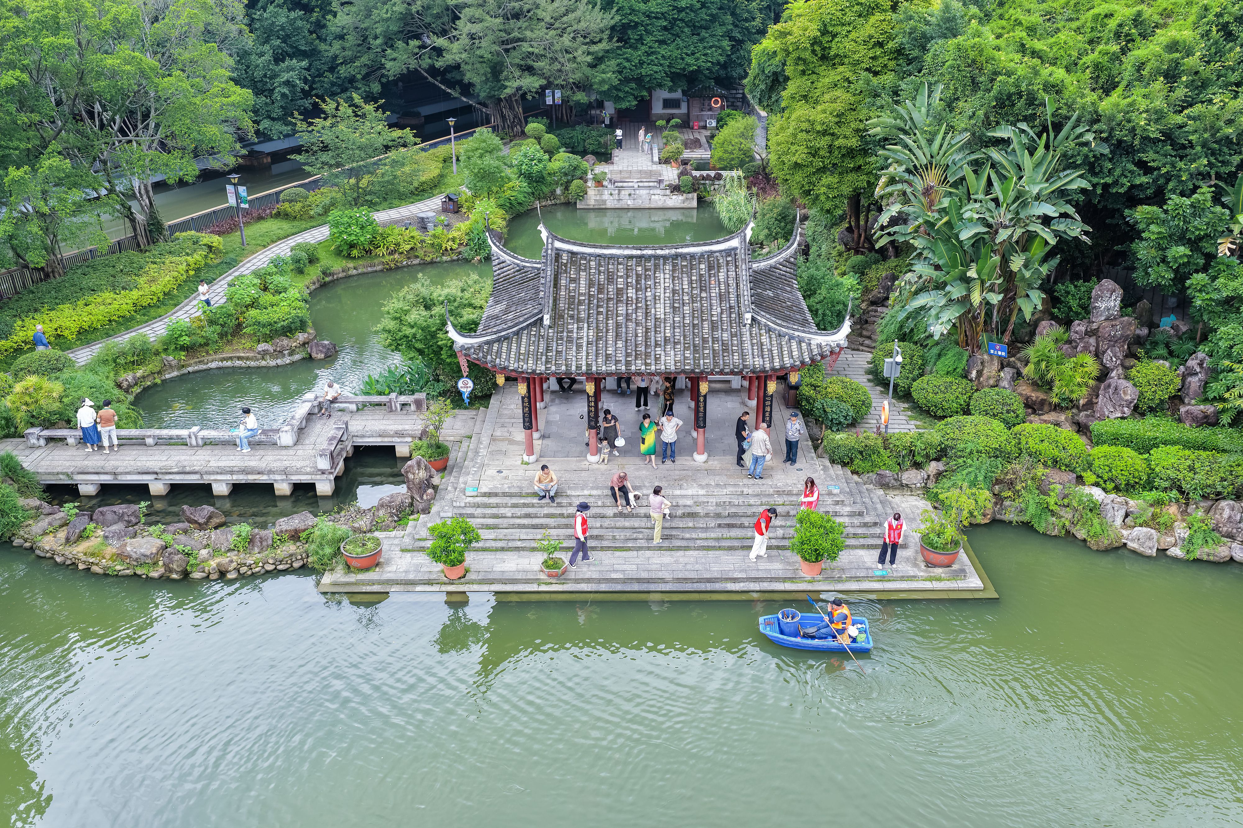 2025年6月4日,福州市鼓楼区安泰街道黎明湖湿地生态公园,人与自然构成了一幅和谐的夏日生态美景。
