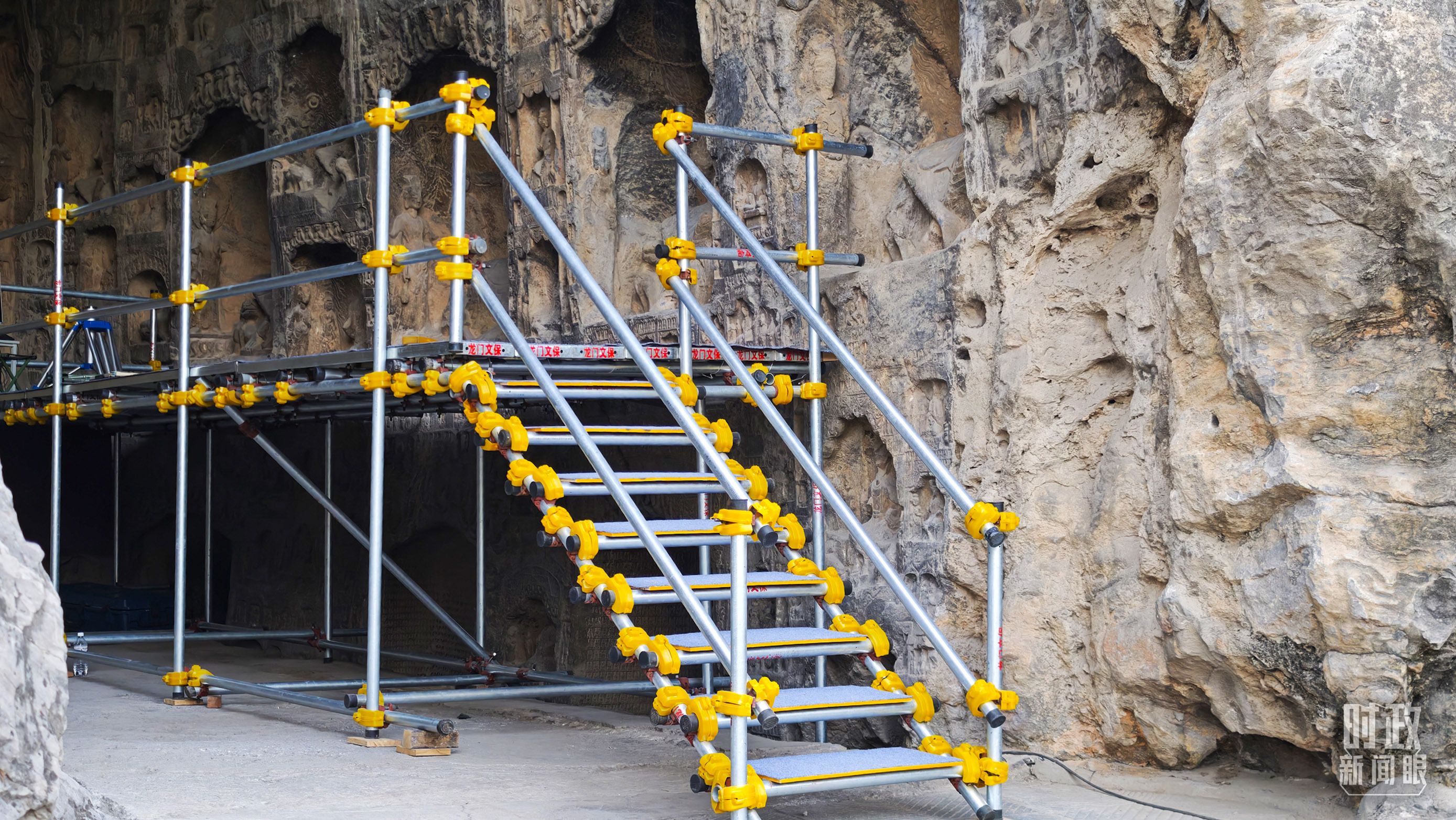 △龙门石窟古阳洞文物修护现场。(总台央广记者潘毅拍摄)