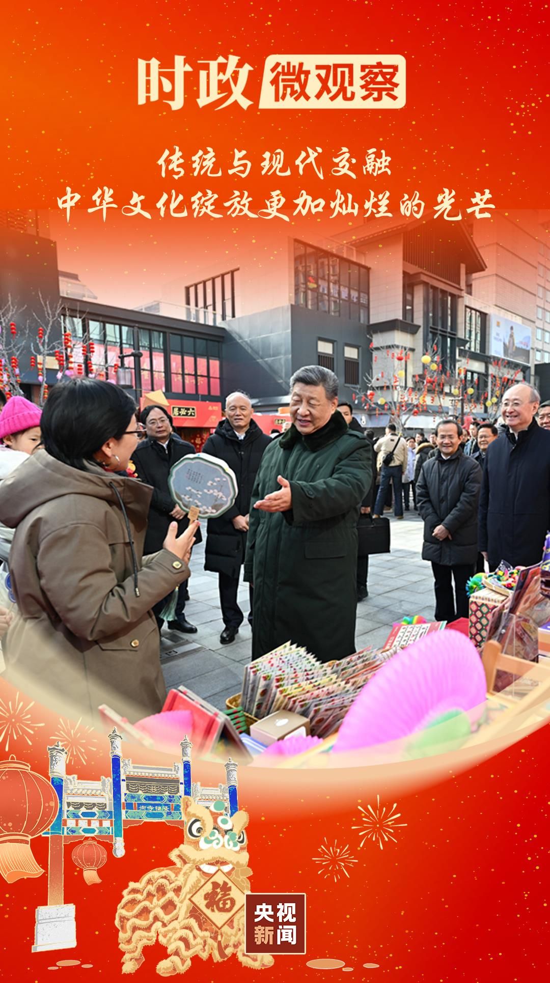 当舞龙舞狮翻腾跃动,当木版年画点染丹青……年味在这些喜庆祥和的氛围中升腾。中华文脉在赓续传承中弘扬,镌刻下解码文化自信的时代答案。