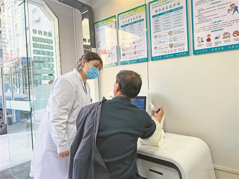 “高压132,低压84,控制得挺好!”听到结果,68岁的王双喜脸上露出安心的笑容:“这儿就像我们的‘健康驿站’,出门买菜、遛弯还能顺便过来测血压、血糖,心里特别踏实。”