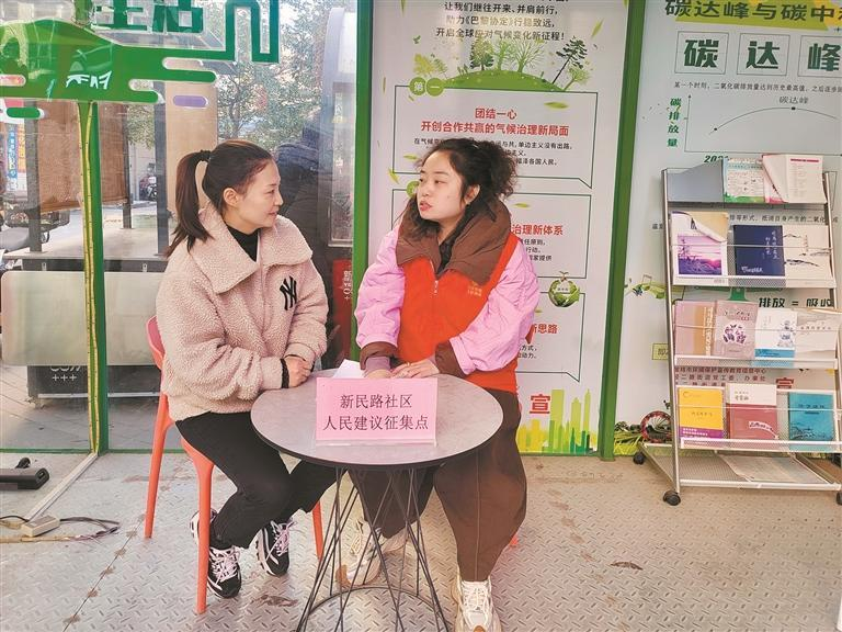 11月27日,在渭滨区经二路街道新民路社区人民建议征集点,群众向工作人员(右)反映意见和建议。