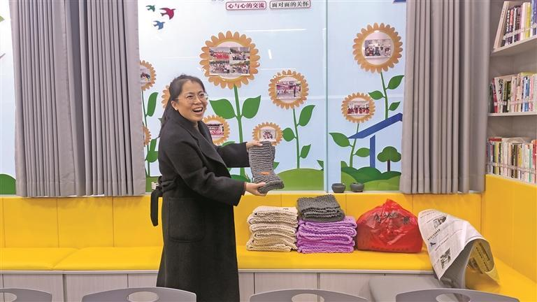 11月20日,扶风县城关街道祥云社区党支部书记苟艳艳展示社区为快递小哥准备的围巾、手套等暖心礼物。