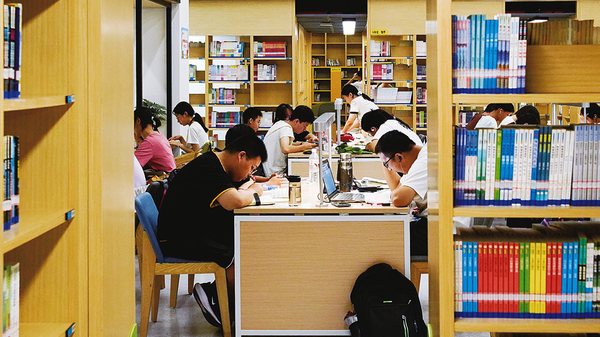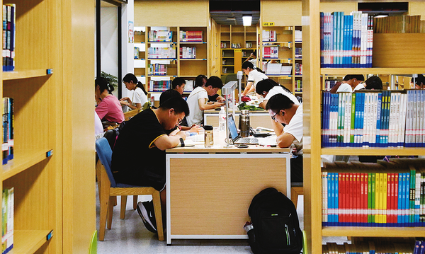 每天早上7点多,排队进入市图书馆的人成为市区一道亮丽的风景线。他们中有备考的大学生,相约读书的中学生,也有不少家长陪伴来看书的小朋友。走进图书馆,清凉的空气扑面而来。明亮的灯光下,每个人都沉浸在知识的海洋中。“我喜欢来图书馆做题,比在家学习效率高。”中学生刘青告诉笔者,放暑假后,她就经常来这里学习。一位带着孩子翻阅绘本的家长告诉笔者,图书馆环境好,有学习氛围,家长也放心。