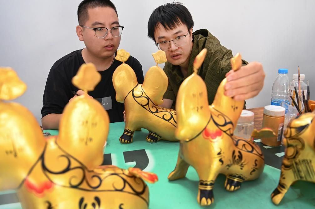创业伊始,胡锦伟通过走访发现,村里家庭作坊生产的泥塑种类少、品质不一,缺乏市场竞争力。不少人对凤翔泥塑“老土”“过时”的印象,也制约着产业发展。“泥塑不仅是传统手艺,还蕴藏着更大的文化价值和市场潜力。”胡锦伟说。他决心运用所学的设计知识,在父辈和乡亲们打下的基础上,推动泥塑与现代生活融合。