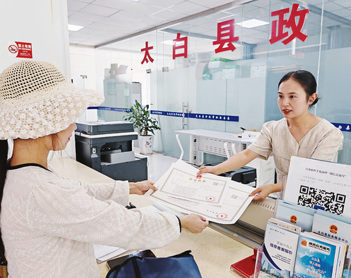 为优化营商环境,太白县推出“民宿开办一件事”专项服务,“一对一”跟踪开展证照办理工作,将民宿开办材料从29份精减至21份,办理时限从10个工作日压缩至1天,并提供上门服务。“现在在家门口就能办证,政府的服务就像春风一样贴心。”白云村民宿负责人拿着新办的营业执照高兴地说。