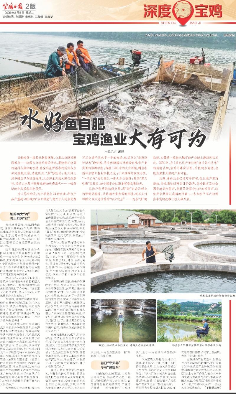 凭借独特水域禀赋,宝鸡渔业熠熠生辉。然养殖者不囿于现状,巧借现代科技,优化模式,育的宝鸡鱼品质更臻鲜美,产量愈趋稳健——现代渔业的“宝鸡模式”,正于一方清波间孕出盎然生机。