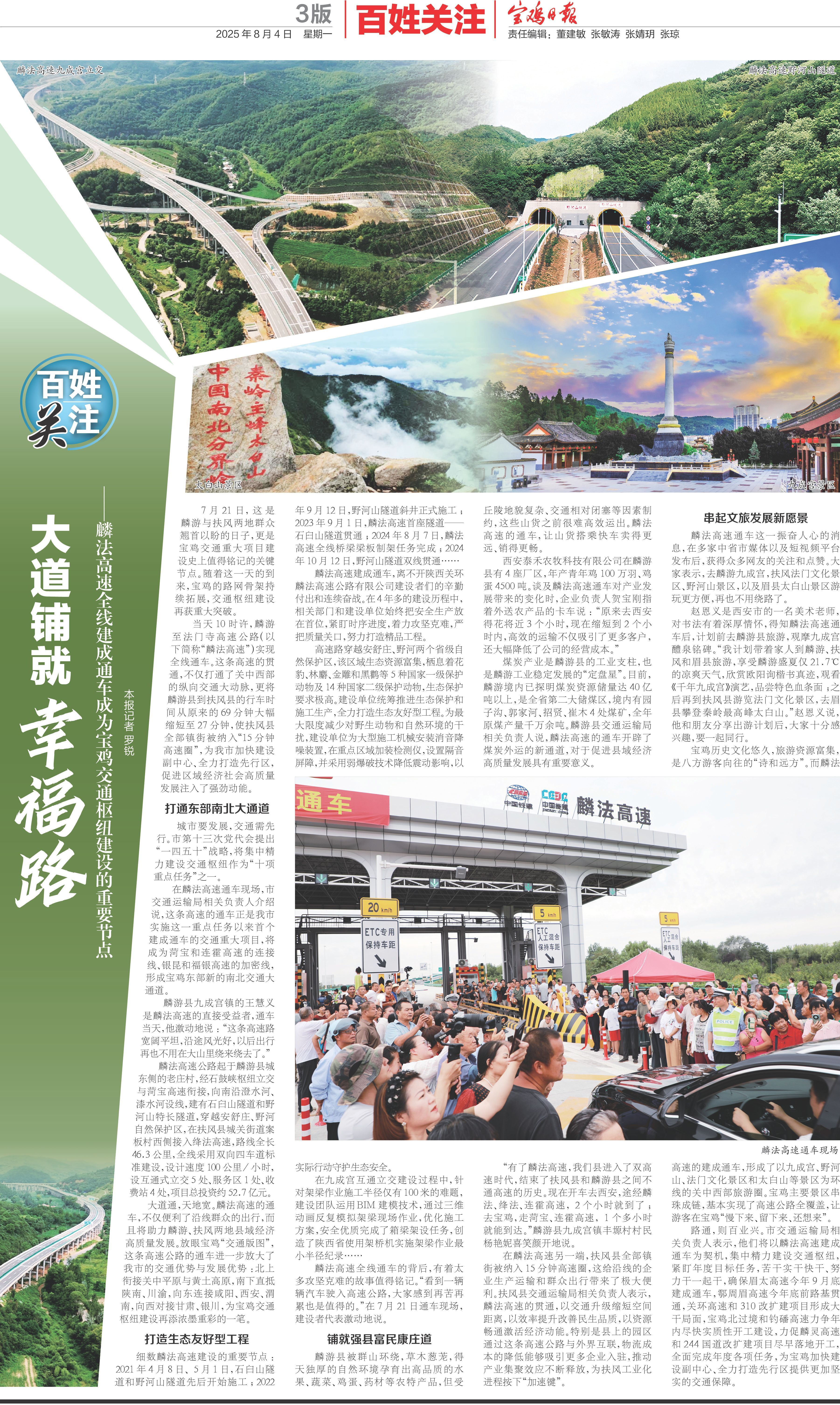 路通,则百业兴。市交通运输局相关负责人表示,他们将以麟法高速建成通车为契机,集中精力建设交通枢纽,紧盯年度目标任务,苦干实干快干、努力干一起干,确保眉太高速今年9月底建成通车,鄠周眉高速今年底前路基贯通,关环高速和310改扩建项目形成大干局面,宝鸡北过境和钓磻高速力争年内尽快实质性开工建设,力促麟灵高速和244国道改扩建项目尽早落地开工,全面完成年度各项任务,为宝鸡加快建设副中心、全力打造先行区提供更加坚实的交通保障。(宝鸡融媒 罗锐)