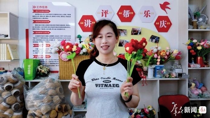 “要让大家的产品不愁卖,关键要在设计上下功夫。”袁湛韬说,“钩织手工行业门槛低、竞争激烈,为了增强竞争力,我们定期会推出一批新款式,大家按样钩织,市场反馈不错。”