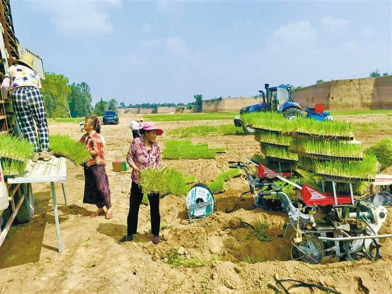 7月30日,在宝鸡市凤翔区长青镇,村民在栽植大葱。