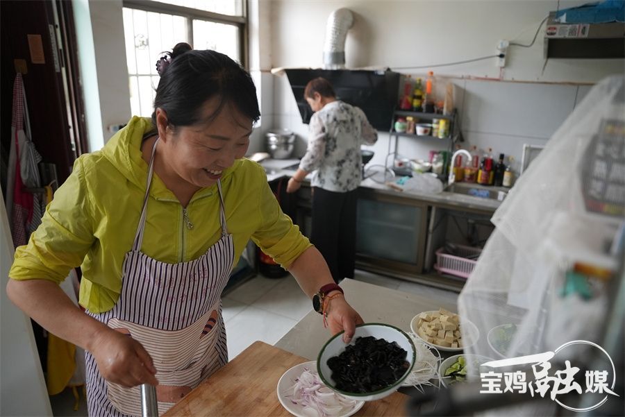 在烧烤小院中,户主井红艳正在准备晚上的食材,准备用美食迎接即将到来的游客。井红艳告诉记者,他之前在西安、宝鸡等地的餐馆里掌勺,主要烹饪川菜。2021年,因为腰颈的伤病,无奈返乡。返乡后,他骑着车在各个庙会上摆摊,前几年,在村上建议下,他在家门前挂上“烧烤小院”的牌子,在家门口做起了烤肉。随着来村里游玩的游客越来越多,他的生意也越来越稳定。