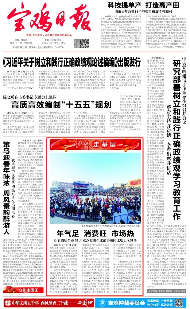为抢抓春节消费旺季,市商务局在春节前夕制定印发了《2026年“乐购宝鸡 情暖新春”促消费系列活动实施方案》,举办2026“首发宝鸡”暨新春消费季活动。联合文旅、农业农村、体育、供销、工信等多个部门,重磅推出新春首发、年货集市、直播助企、冬季“票根经济”等10项市级重点促销活动,以“1+10+N”模式市县同频、全域融合,解锁全业态消费新场景,点燃新春消费“烟火气”。