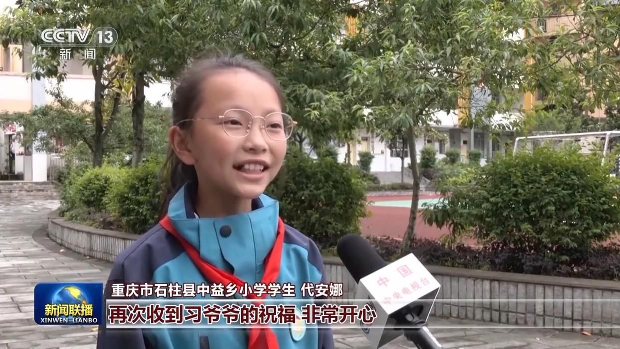 重庆市石柱县中益乡小学学生 代安娜:再次收到习爷爷的祝福,非常开心。我会铭记习爷爷对我们少年儿童的关爱,立志向、修品行、练本领,德智体美劳全面发展。