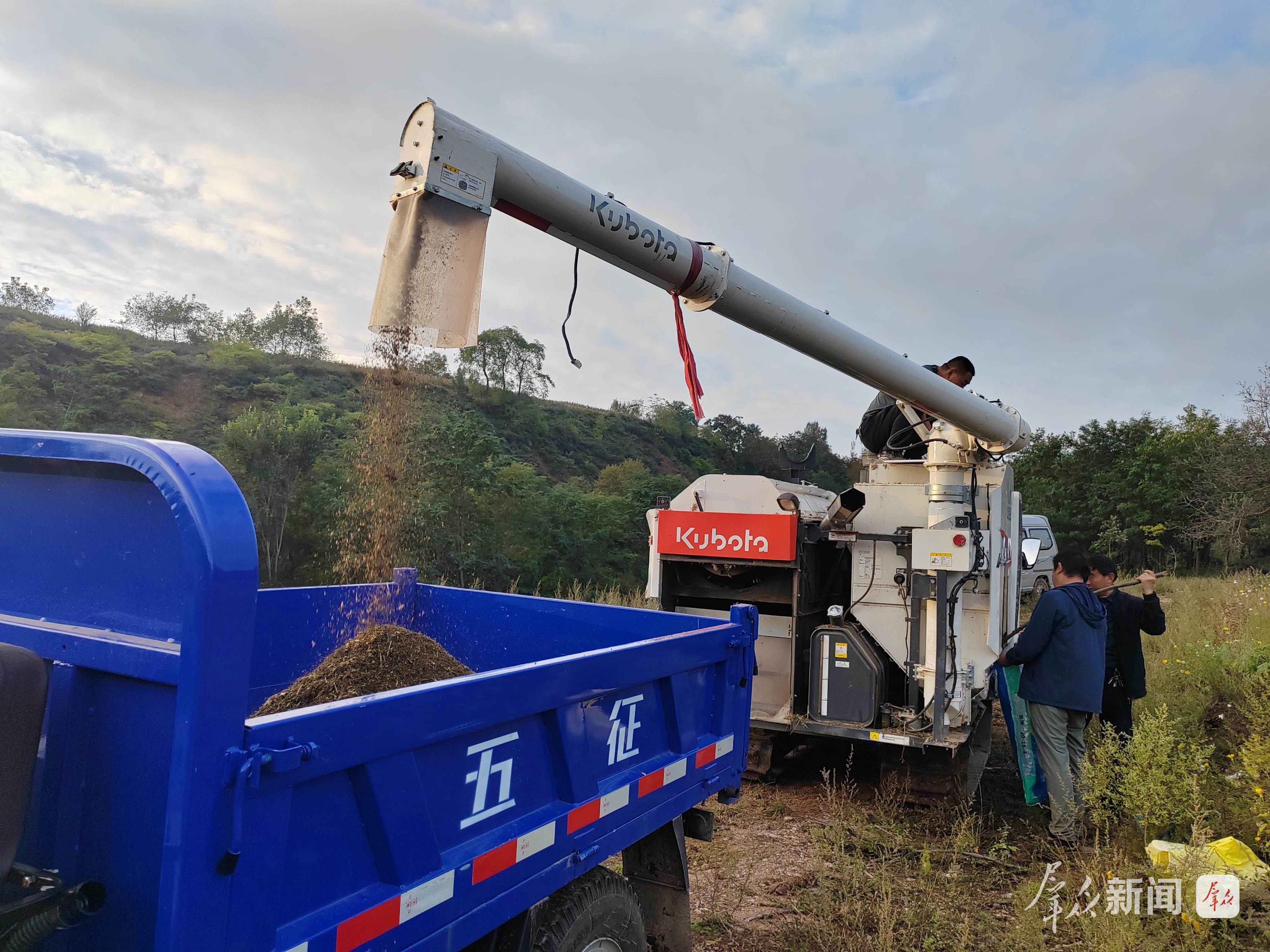 陇县群众在机械化收获荞麦。