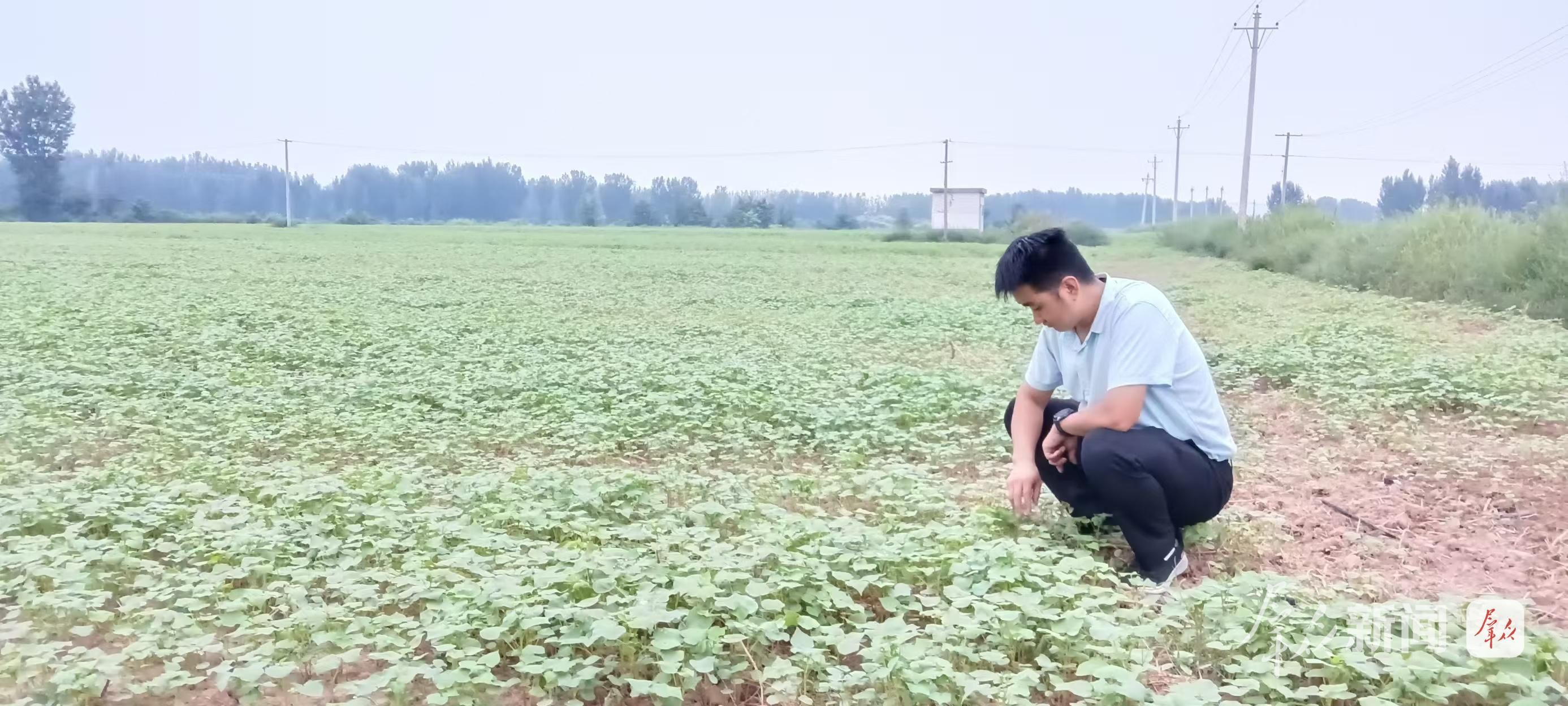 庙坡村党支部书记高鹏飞在观察荞麦长势。