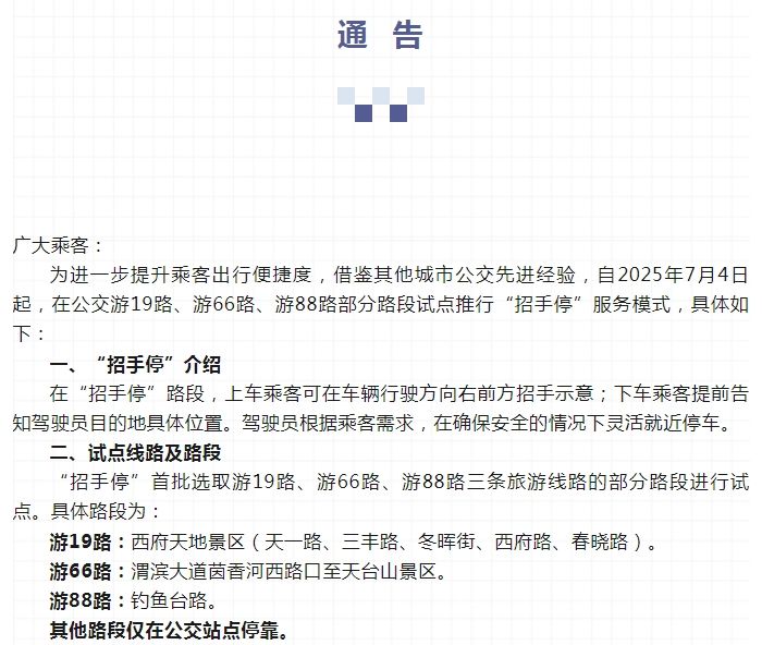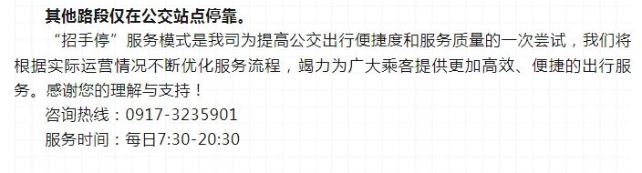 关于在3条旅游公交线路试点推行“招手停”的通告