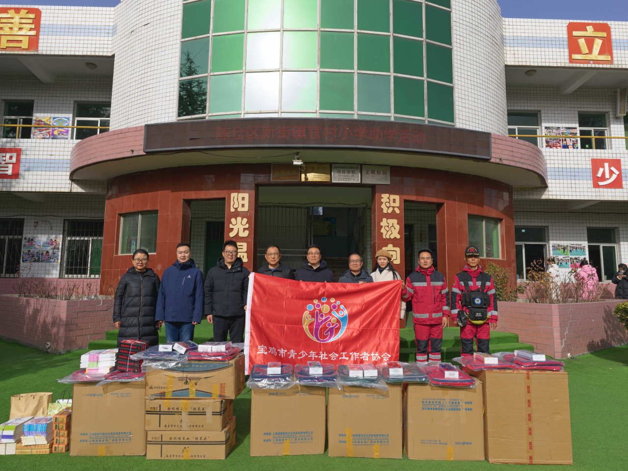 1月26日,共青团宝鸡市委联合市公安局、市教育局共同开展的“金盾护苗”青少年群体助学关爱活动走进陈仓区新街镇官村小学。宝鸡市青少年工作者协会志愿者及官村小学师生等100余人齐聚校园,用爱心为困境青少年撑起一片温暖晴空。