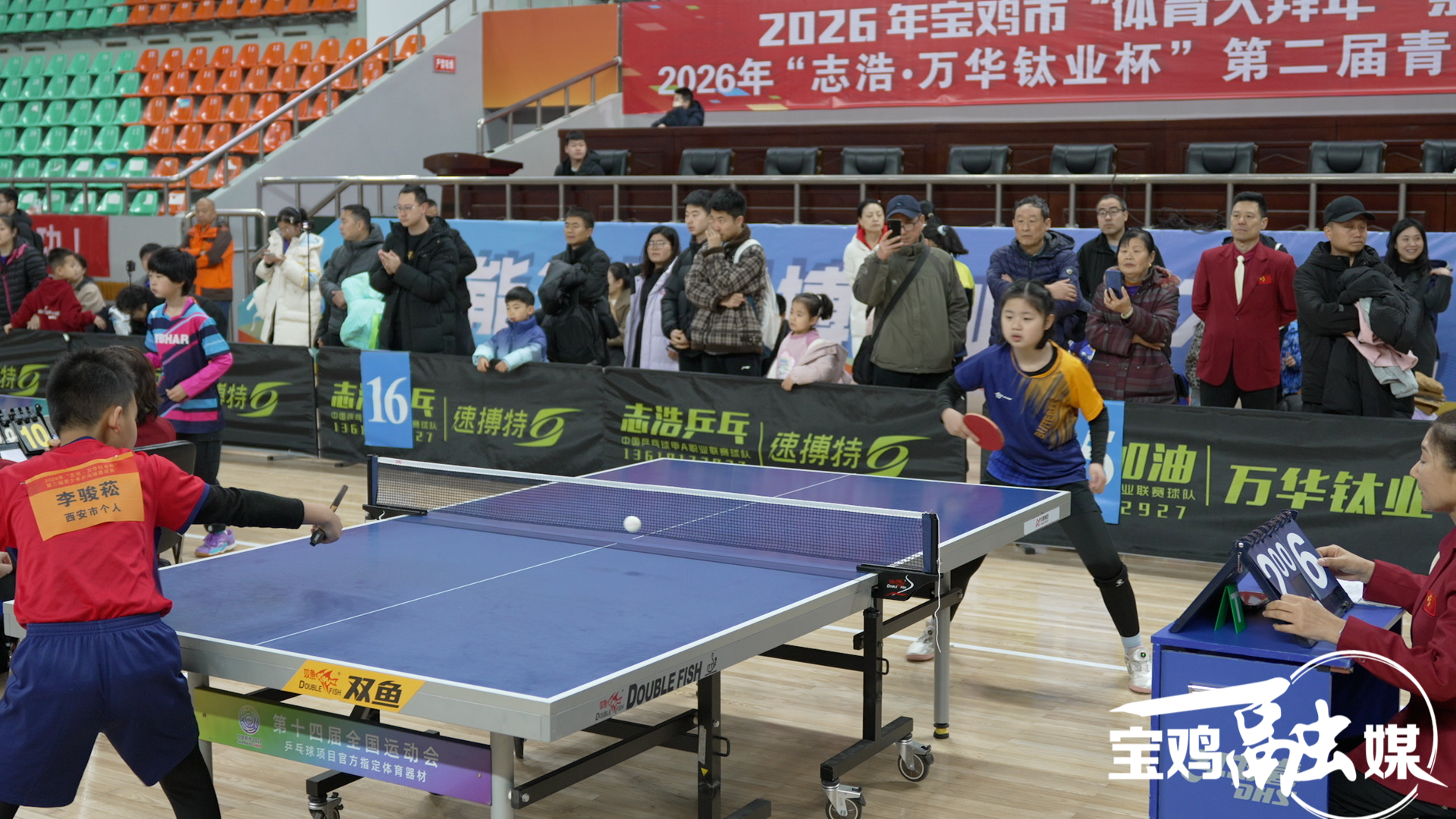 (宝鸡融媒 贾小可)2月27日,2026年宝鸡市“体育大拜年”系列活动——志浩·“万华钛业杯”第二届青少年乒乓球邀请赛在市体育馆开赛。来自全国13个省市的900多名青少年乒乓球选手齐聚赛场,以球会友、挥拍逐梦。