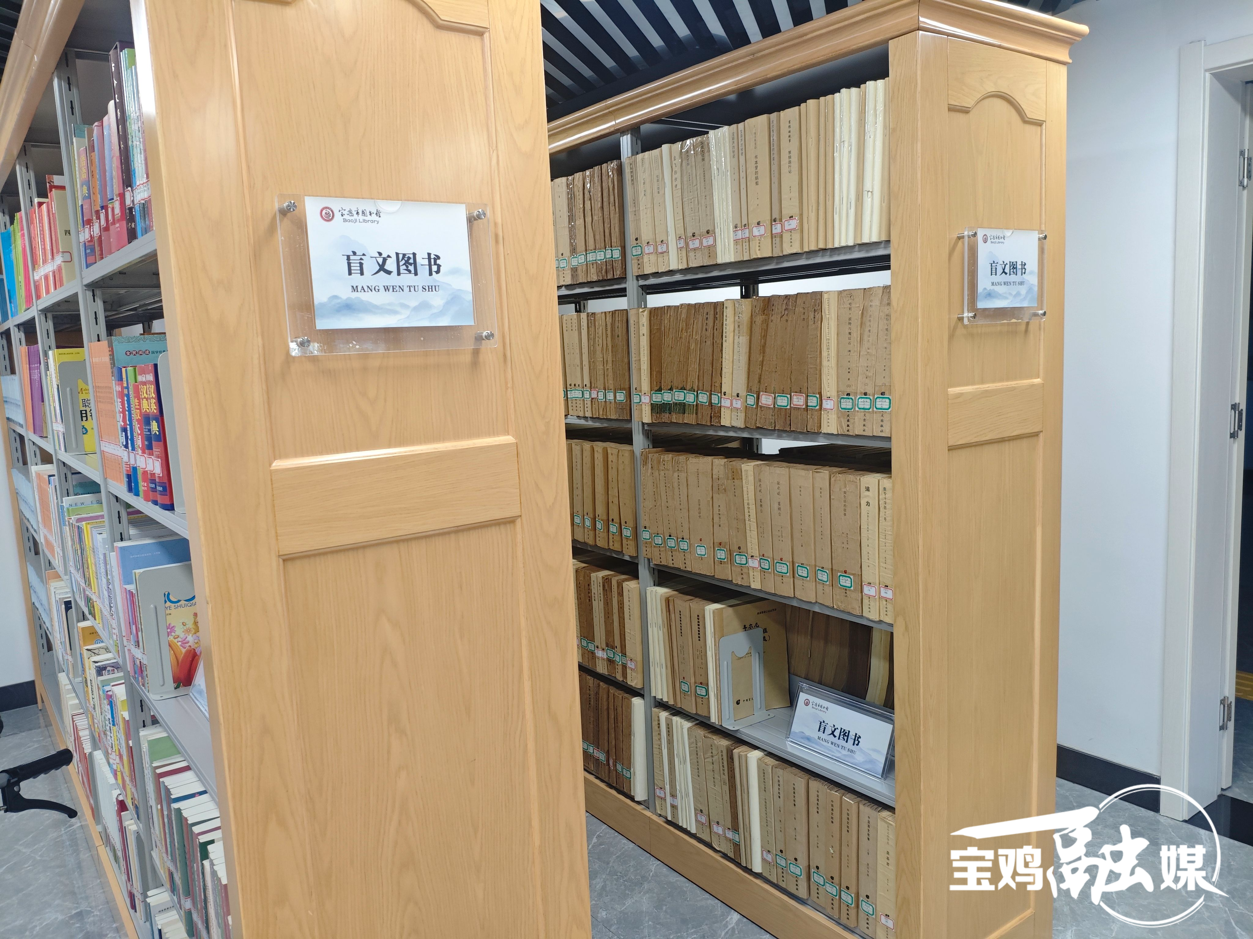 目前,宝鸡市图书馆视障阅览室配备各类盲文书刊1500多册,有声读物280册,并配有语音电脑系统和微型录音机、电脑一体机、电子扩视仪、电子远近助视器等设备,为特殊读者的阅读学习提供便利。