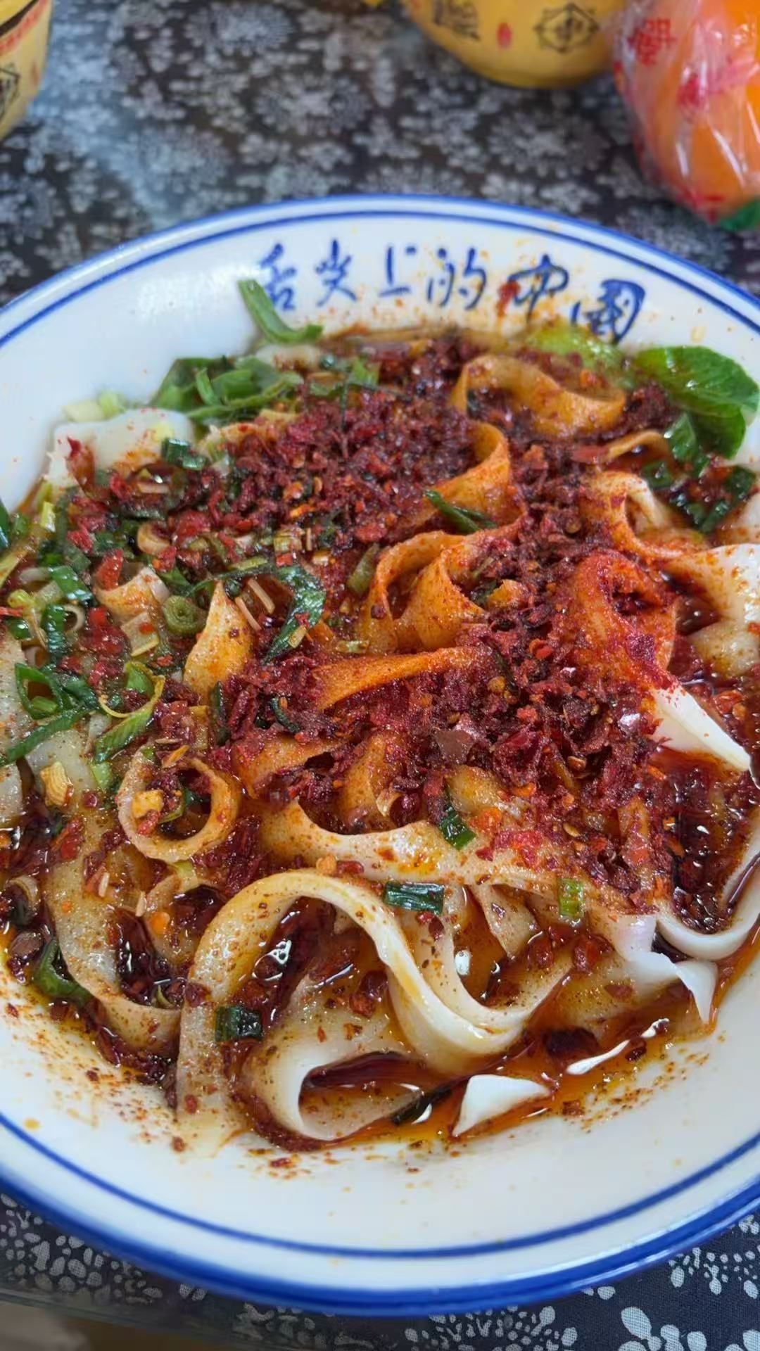 (来咧来咧!人人一碗宽扯,油泼几,香很!)