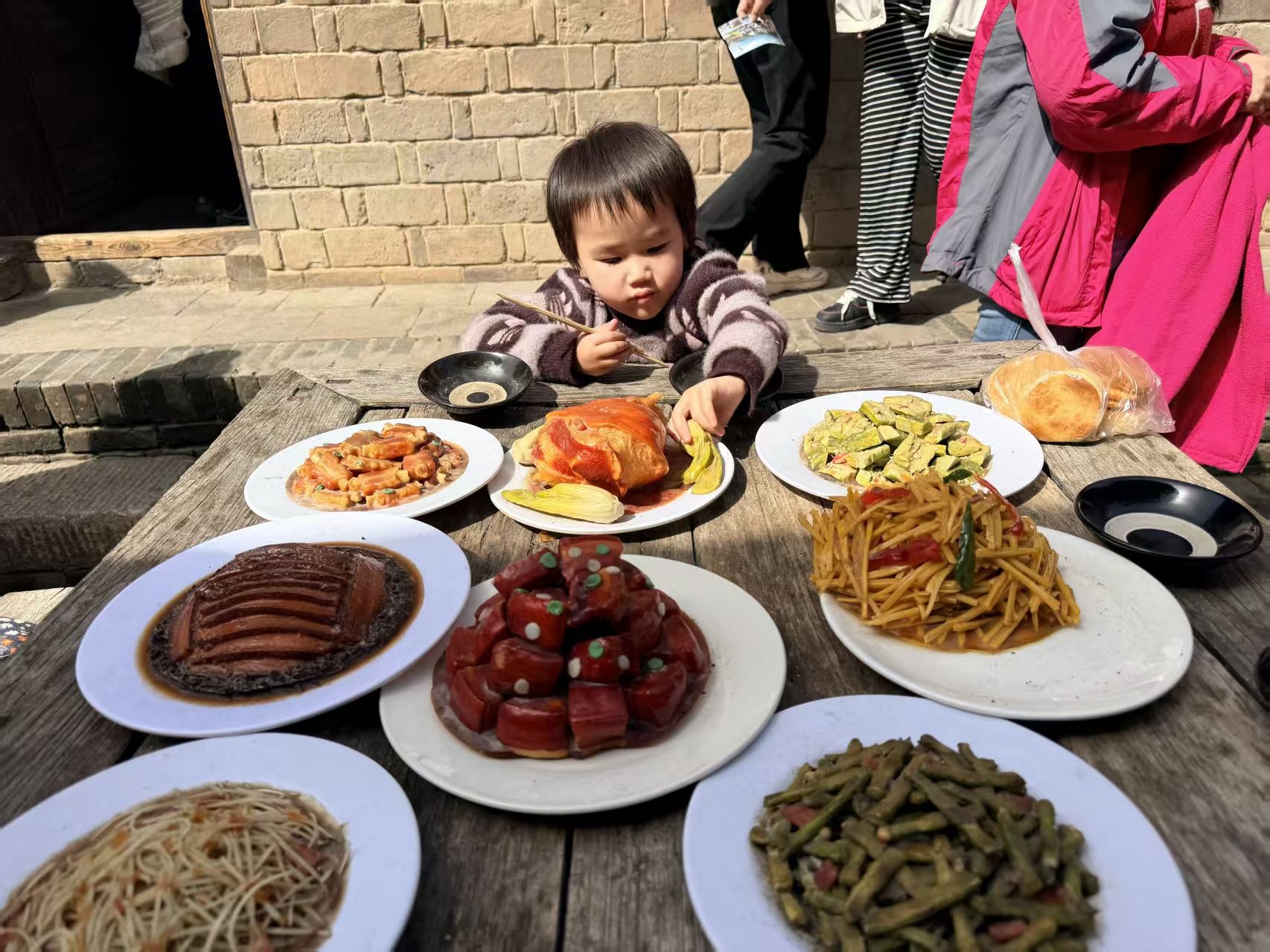 (把娃馋的,吃这么好?等等,好像是道具......)
