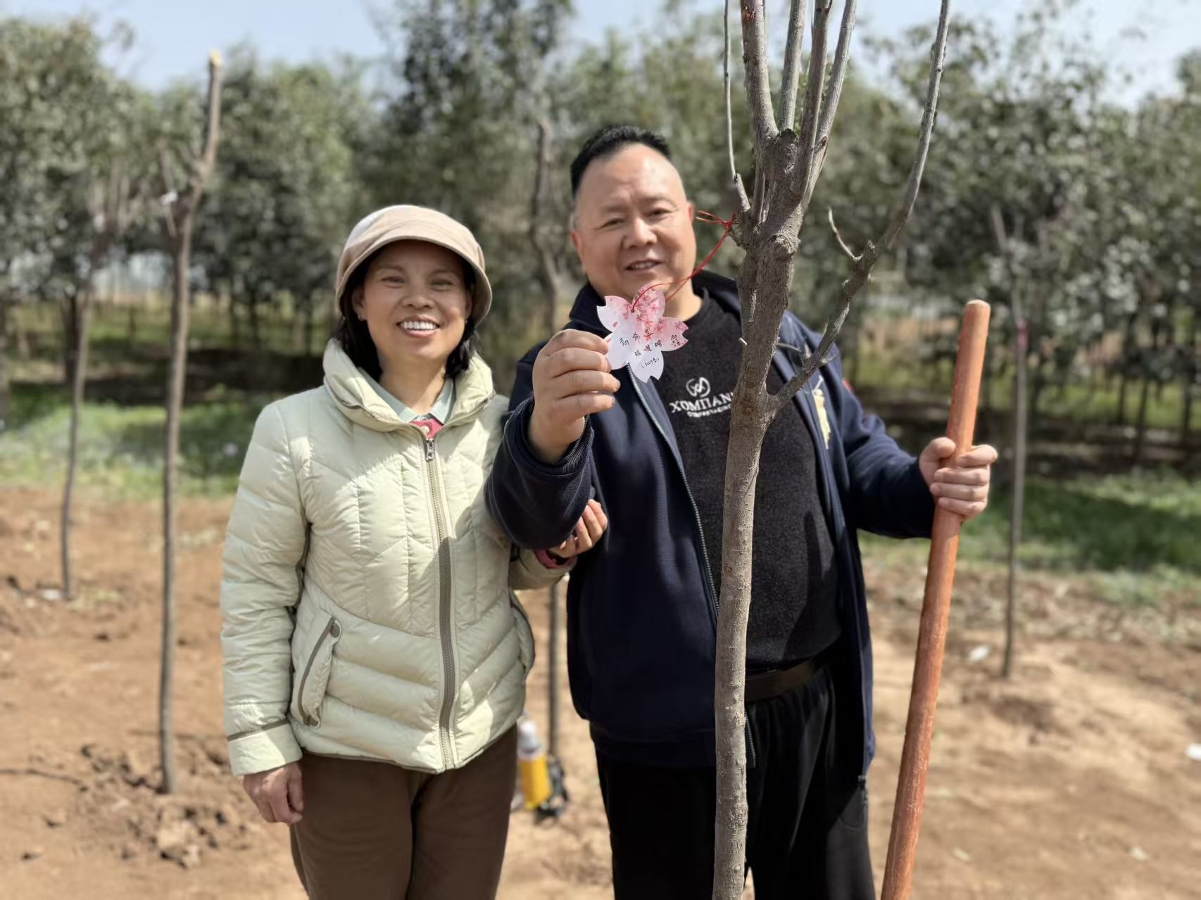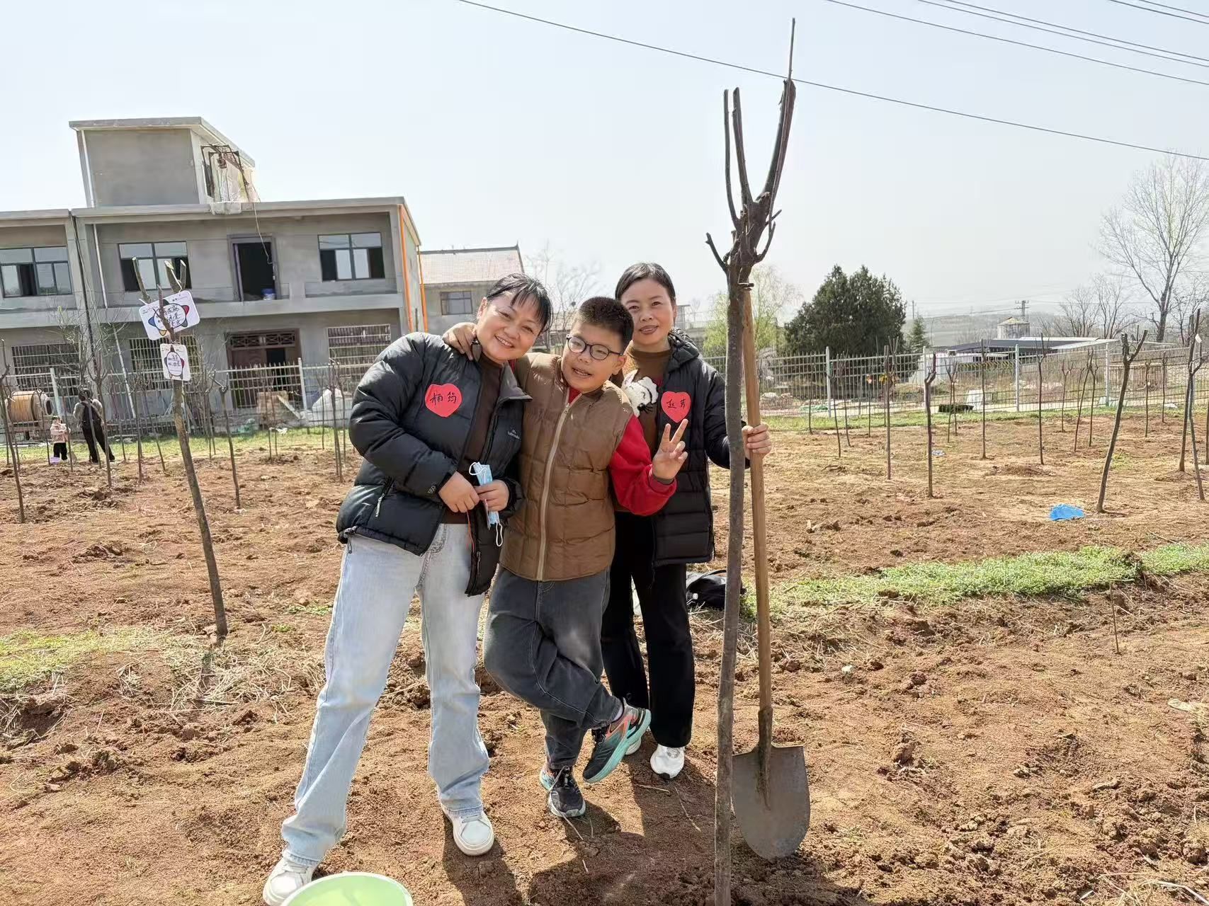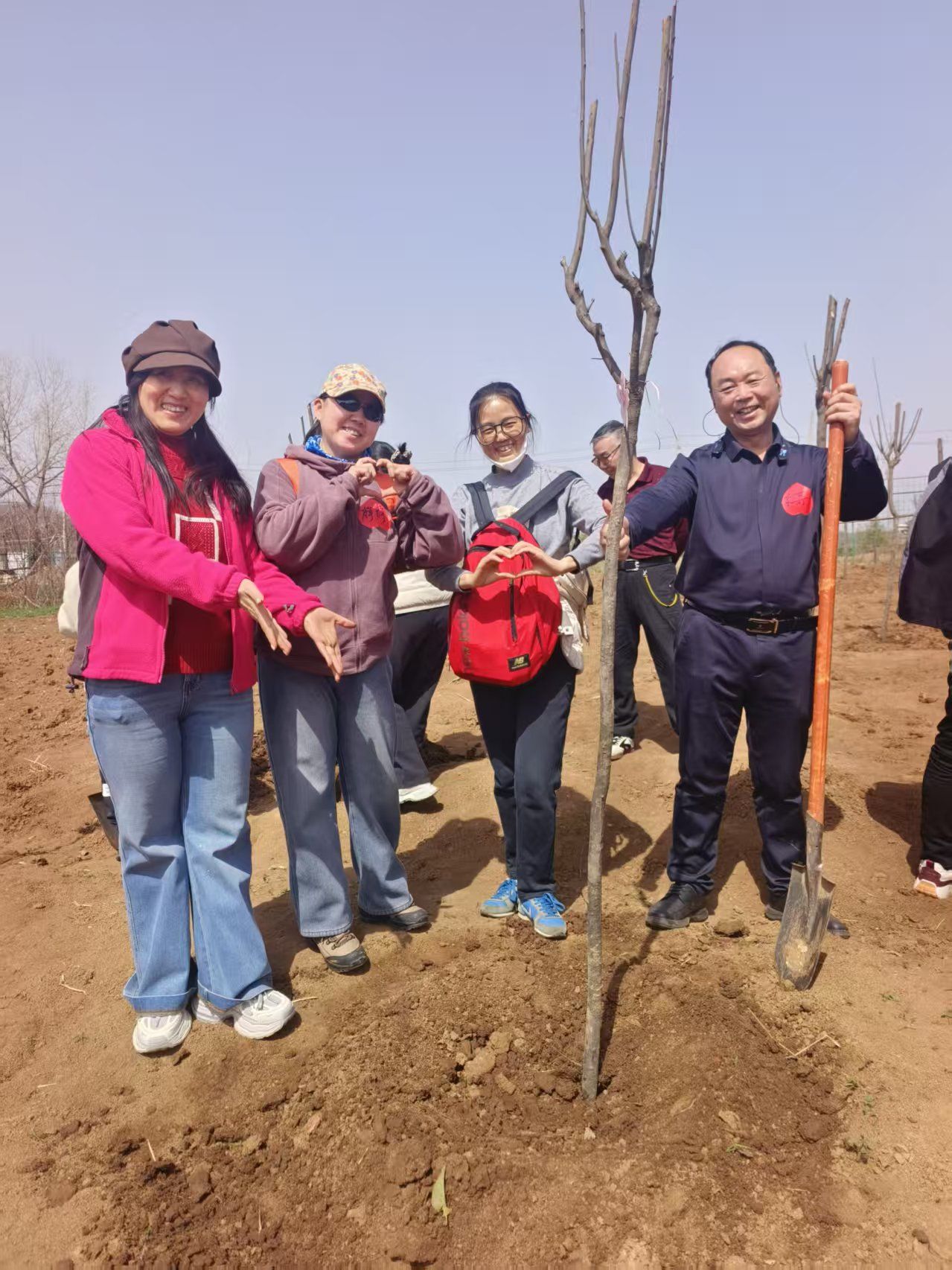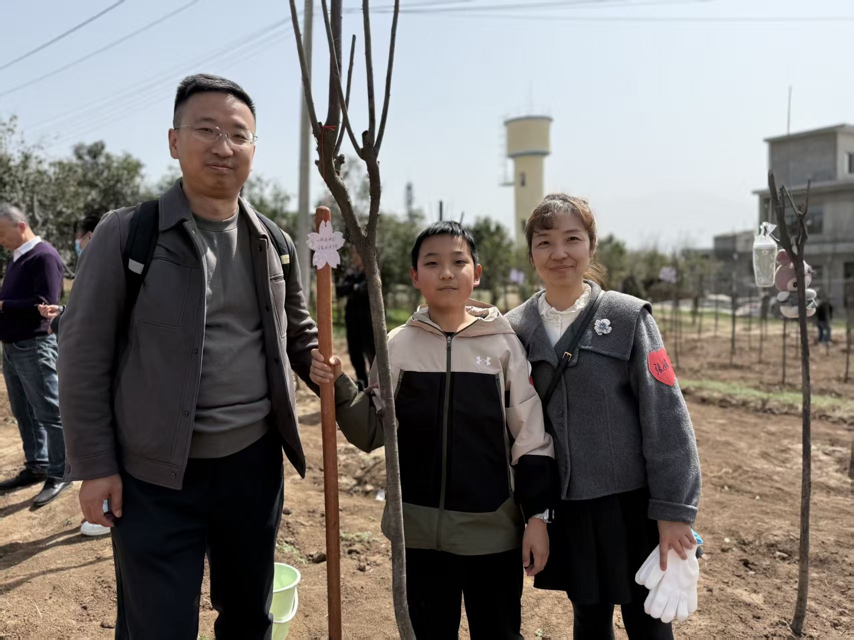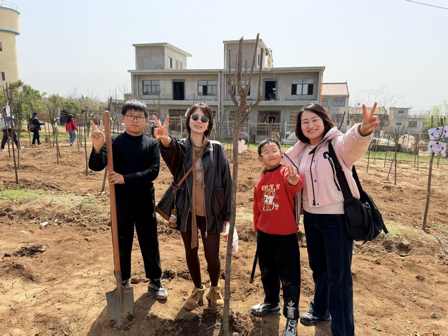 挥锹培土,浇水栽苗,
