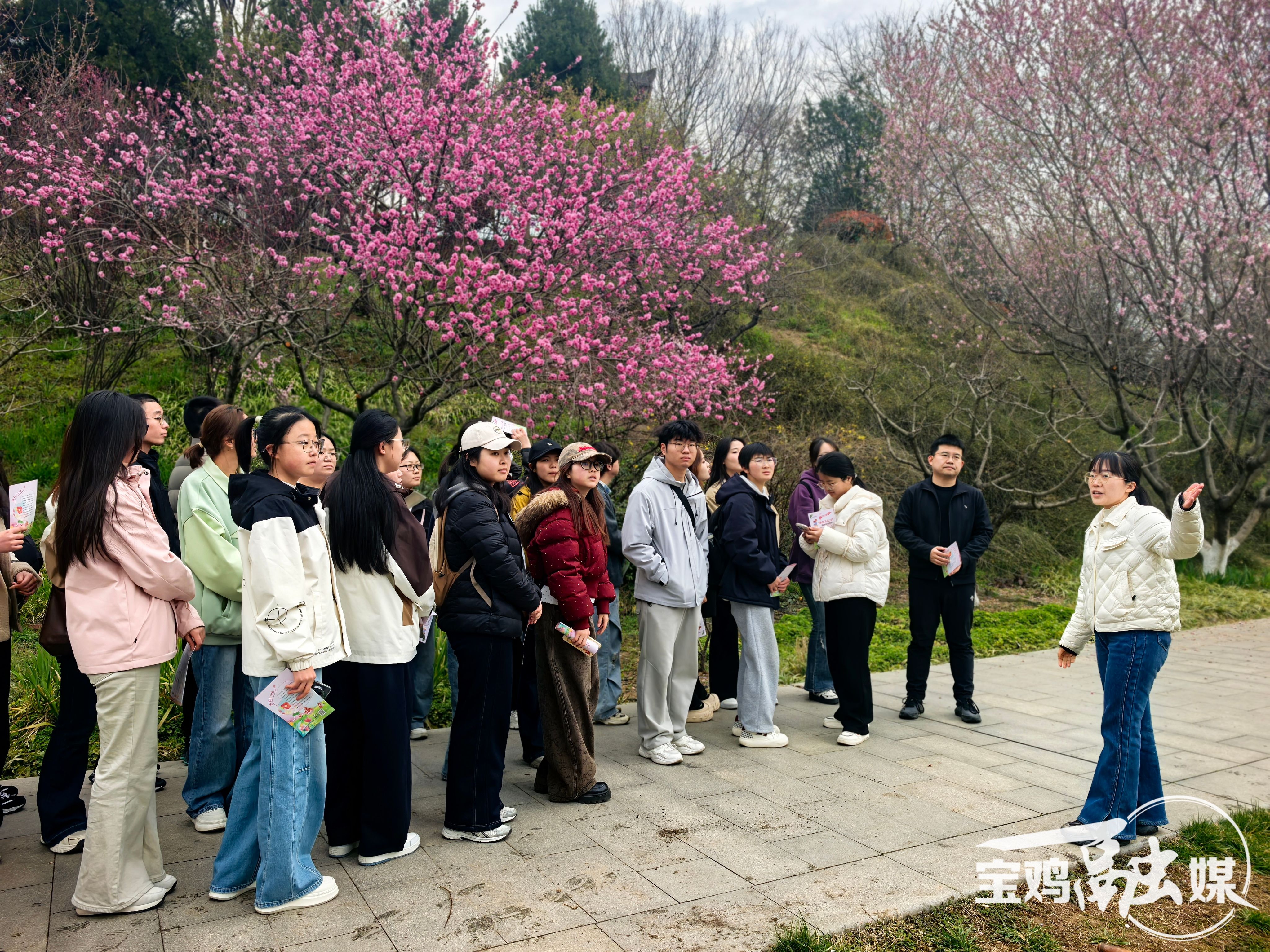 活动一开始,宝鸡植物园的科普工作人员为师生发放了春季赏花植物图鉴手册,并带领大家边走边看、边看边讲。从花色、花型到叶形、果序,从识别技巧到生长习性,工作人员结合本地常见春花的形态特征与生态习性,把专业的知识讲解得生动具体、通俗易懂。师生们在观察中提问,在交流中思考,原本“只觉好看”的花,如今都能准确叫出名字、说出特点,真正实现了从“看热闹”到“懂门道”的转变。